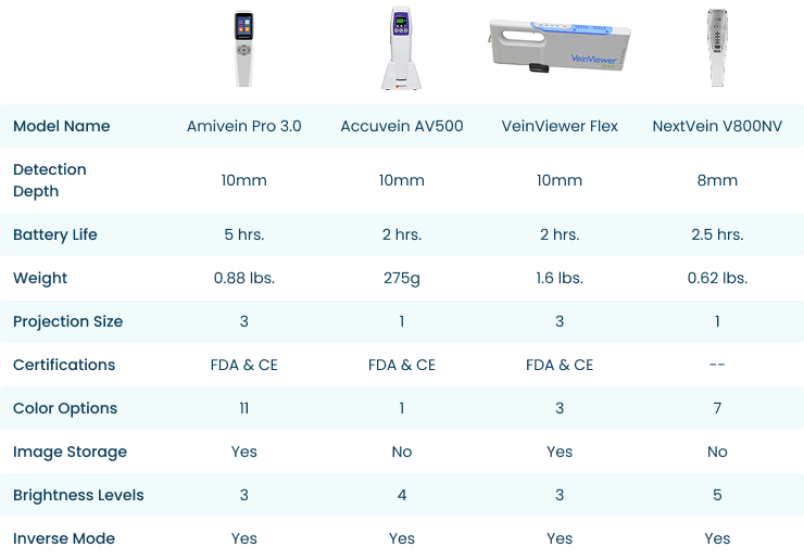 Four major brands come to mind when comparing top-performing products in the vein finder landscape. Each of these brands offers a unique set of features and benefits with emphasis on specific user needs and medical environments.